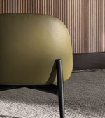 A contemporary lounge armchair with a soft sculpted form and generous comfort. Upholstered in Aspen 30 Verde Olio leather, paired with an ash wood structure in licorice lacquer, it delivers understated luxury and a refined modern presence.