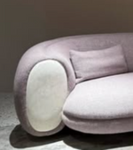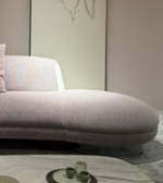 This is a modern, designer curved sofa featuring a minimalist and sculptural form. It has a distinctive organic, wave-like silhouette that adds softness and sophistication to the space. The backrest gently wraps around in a crescent shape, creating an inviting and cozy corner. Size (L × B × H):