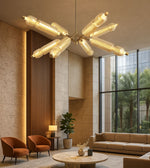 Product Description - A chandelier that captures attention from every angle. NovaCluster blends structured elegance with soft, layered lighting. Its handcrafted finish and stunning glasswork make it ideal for premium homes and hospitality spaces seeking design impact and warm ambience.