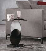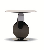 Featuring a round glass surface and intersecting metal discs, this table blends modern design with sculptural elegance. SIZE: 1400*750*360 MM